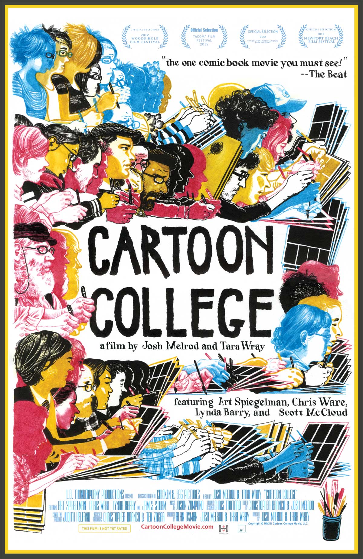 CARTOON COLLEGE follows a group of students at one of the most selective and grueling art schools in America: The Center for Cartoon Studies in White River Junction, Vermont. A thoughtful and funny look into the world of aspiring indie cartoonists and graphic novelists, CARTOON COLLEGE is an examination of the creative process in action, demonstrating the passion and fortitude it requires when a person chooses their art over all else. Feature Documentary by Josh Melrod and Tara Wray