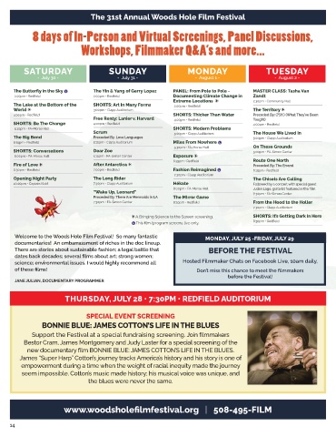 Welcome to the Woods Hole Film Festival! So many fantastic MONDAY, JULY 25 -FRIDAY, JULY 29